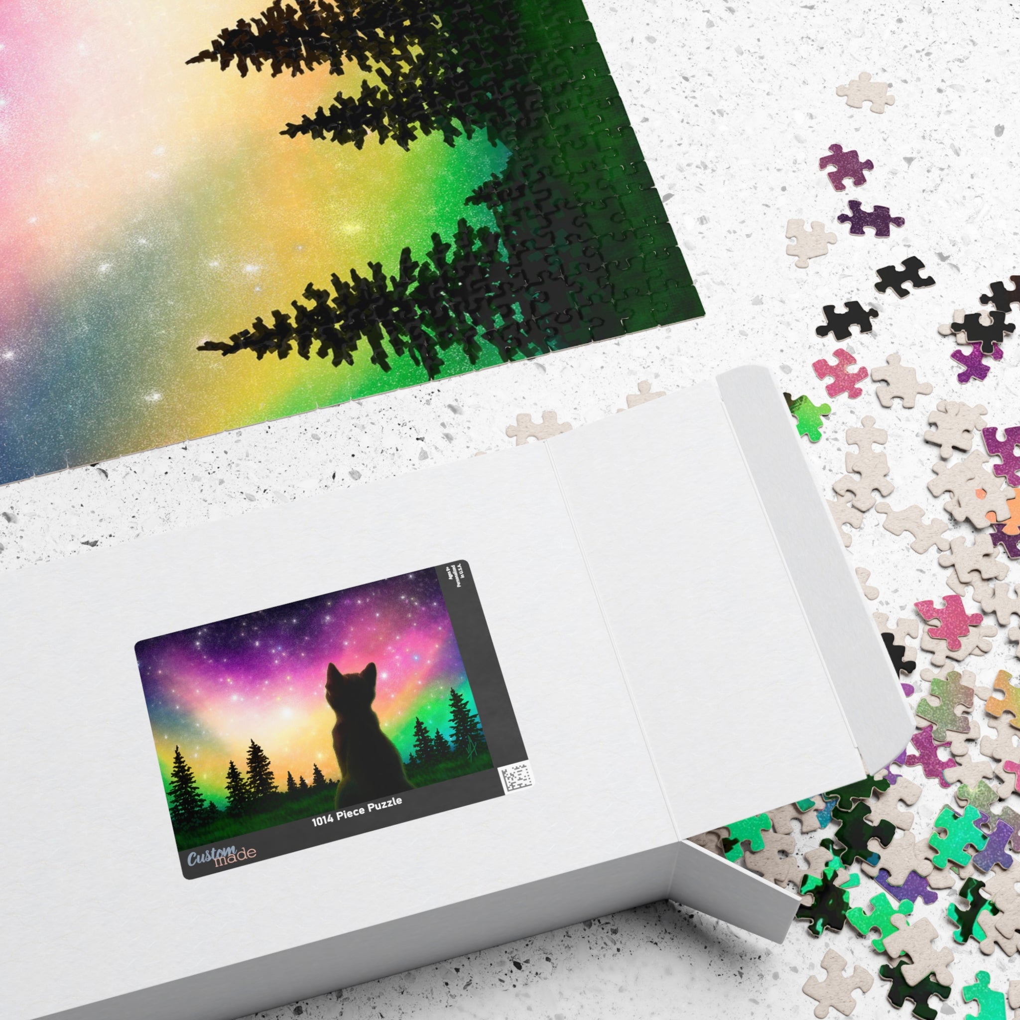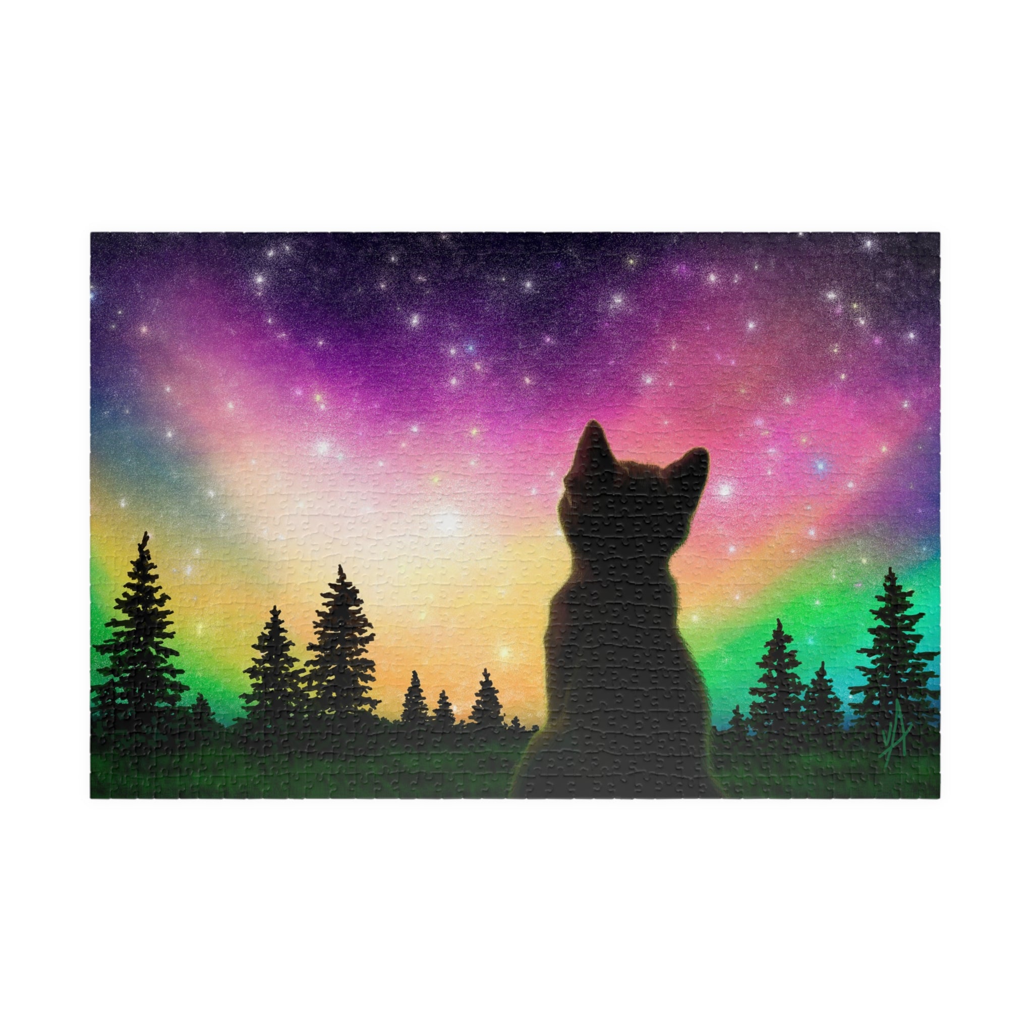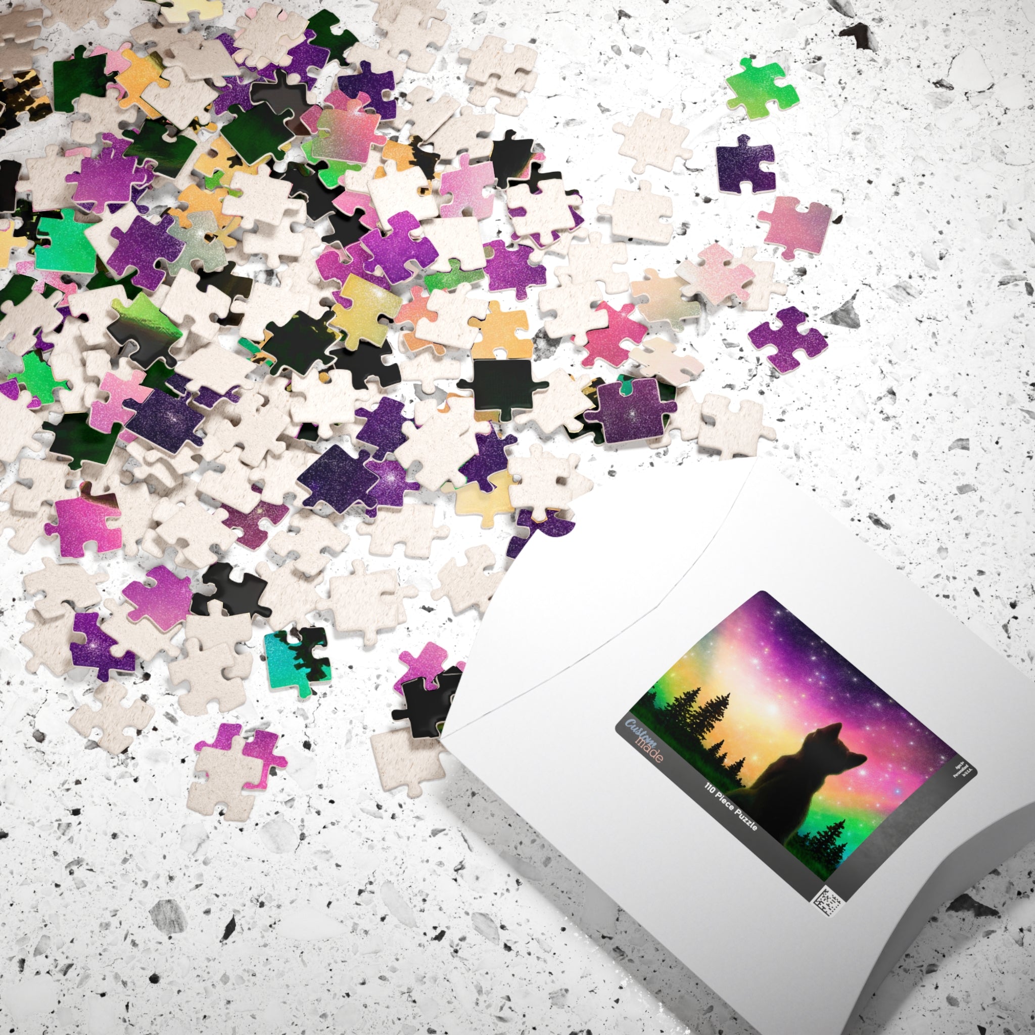 This is a glossy jigsaw puzzle on laminated chipboard. It comes in a variety of sizes to match your challenge level. A reference print is included to help you out when you need it.