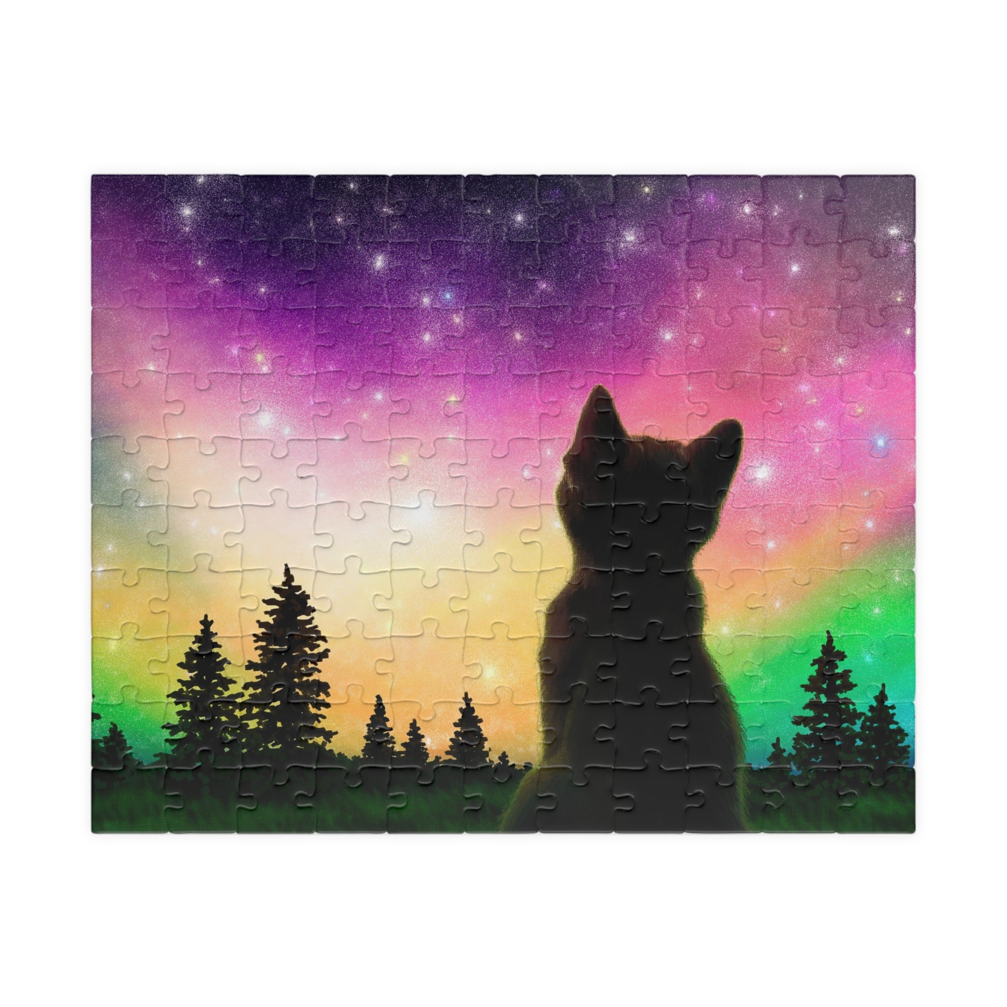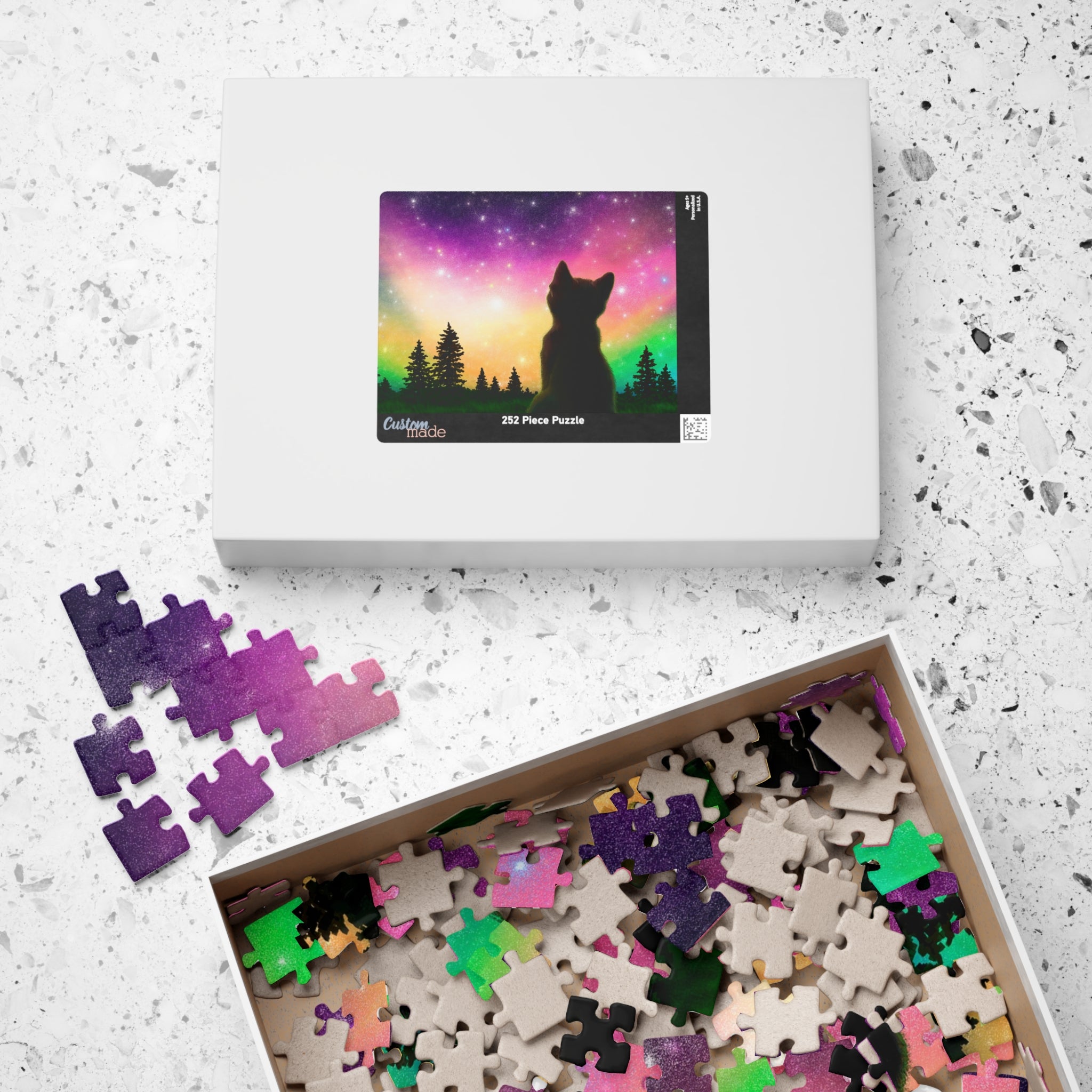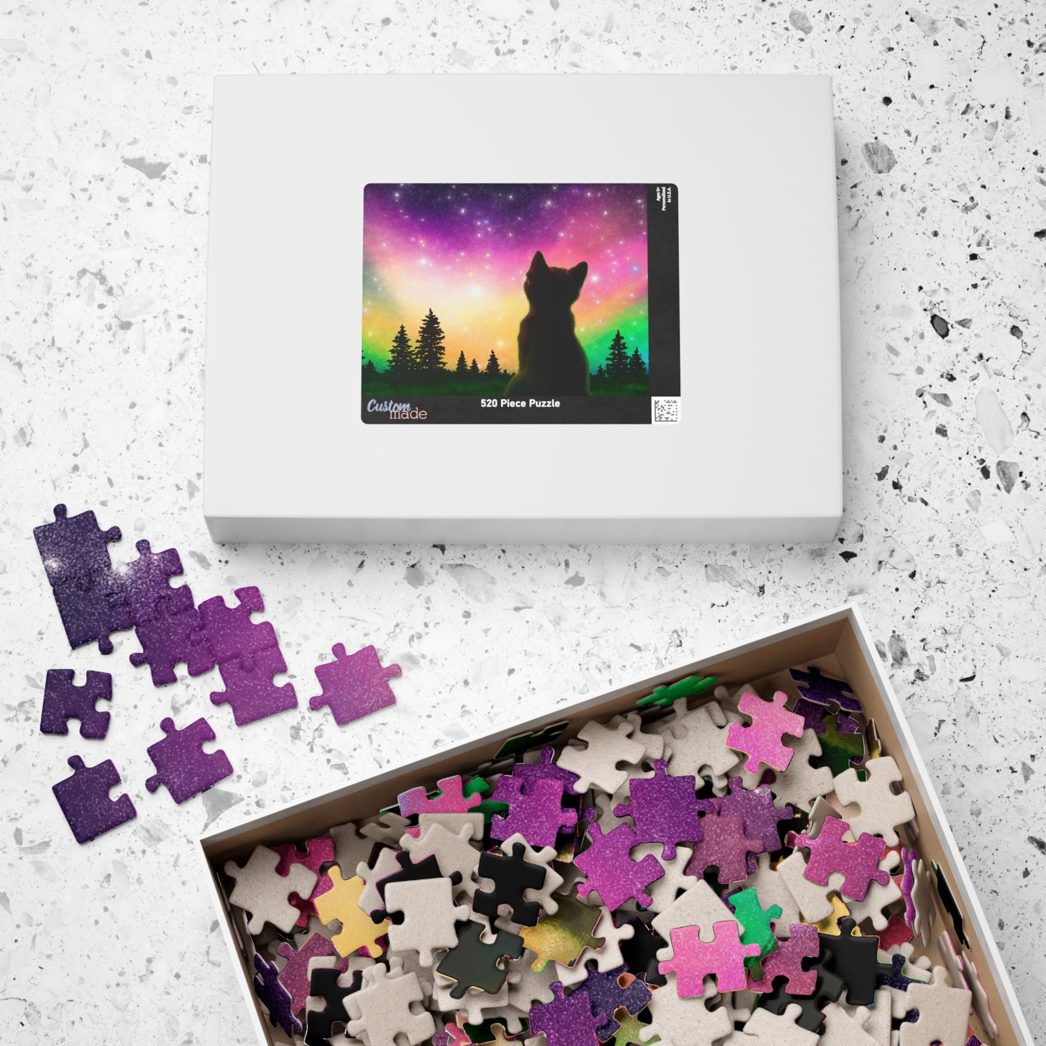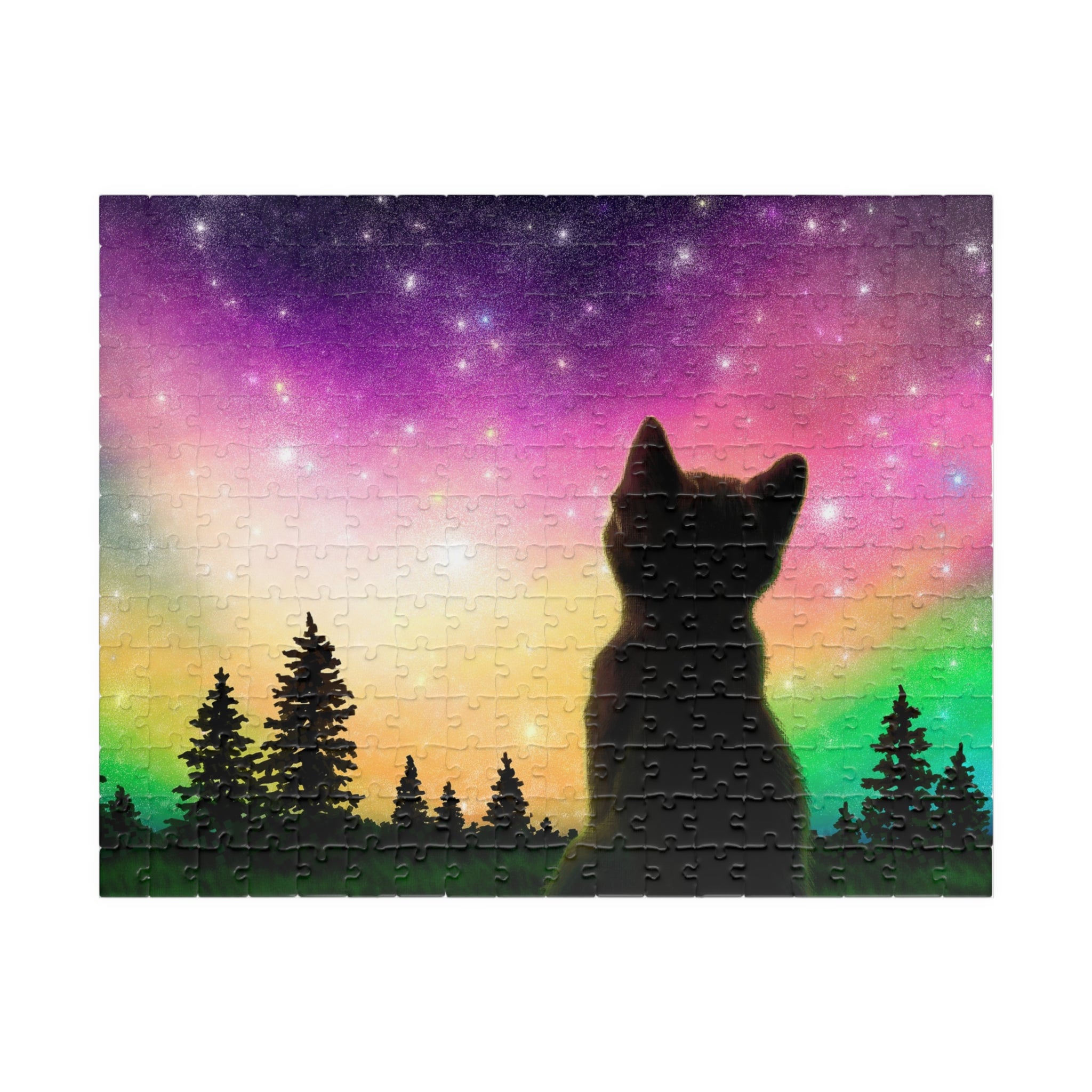 This is a glossy jigsaw puzzle on laminated chipboard. It comes in a variety of sizes to match your challenge level. A reference print is included to help you out when you need it.