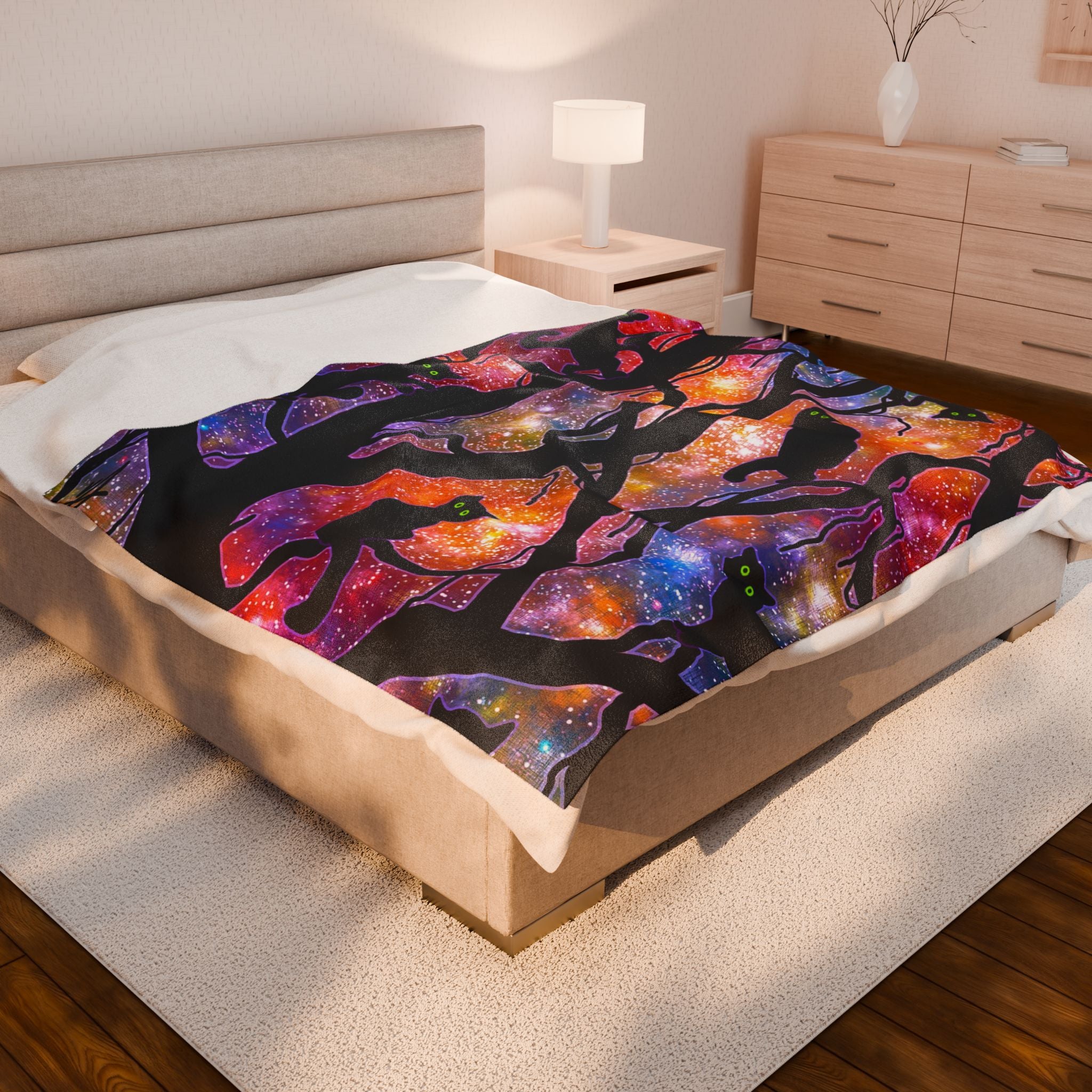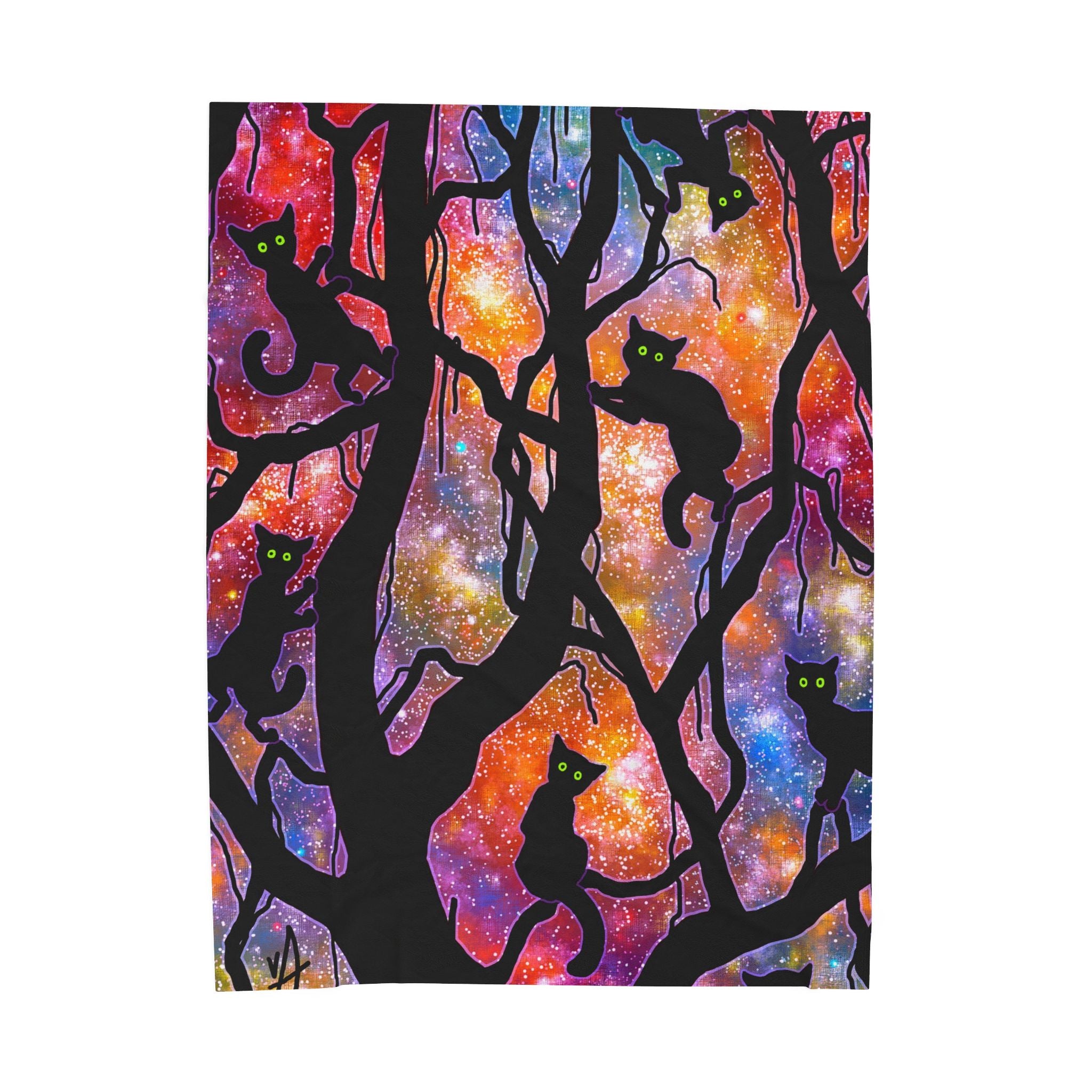 This blanket is a super-soft lightweight fleece. The back of the blanket is solid white. Your cats will love it. We hope you will too.